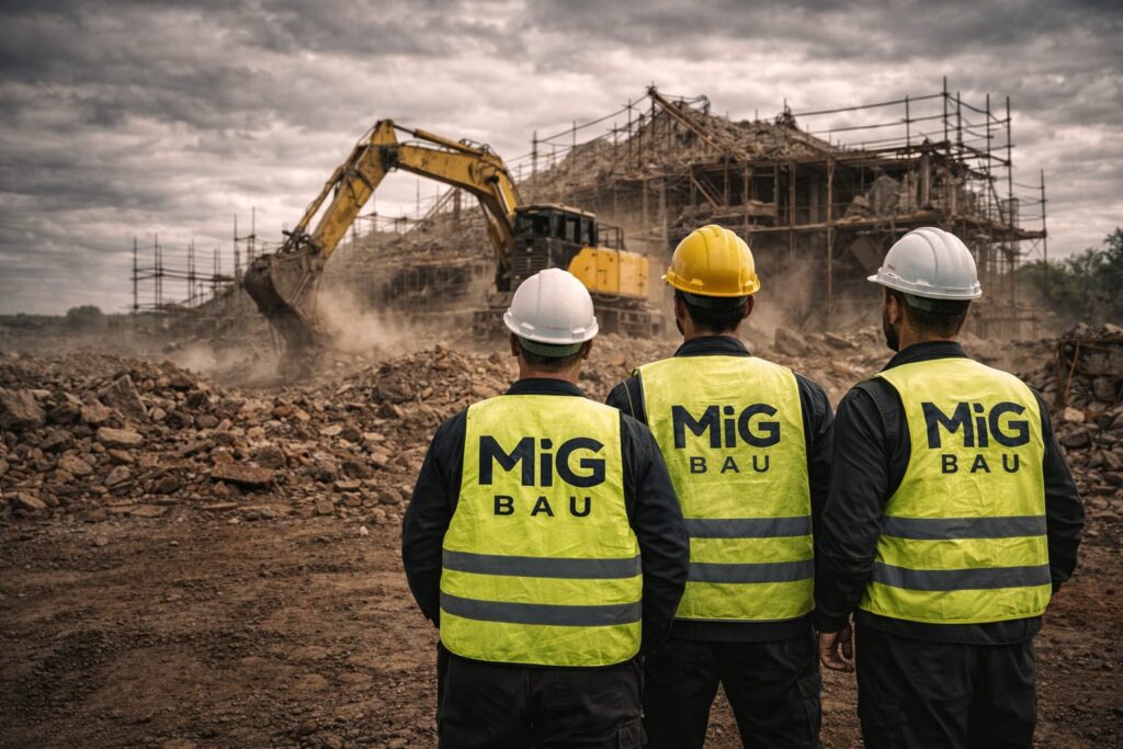 MiG Bau GmbH ist spezialisiert auf professionelle Abbrucharbeiten – von Entkernung bis Komplettabriss.